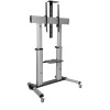 Bring the Presentation to Your Audience\nThe DMCS60100XX combines the strength of a height-adjustable TV floor stand with the convenience of a portable cart. Mount a flat or curved panel television, monitor or interactive whiteboard on this movable TV stand and bring it to your audience in a classroom, lecture hall, office, conference room or other location where audio/video resources are shared. The DMCS60100XX accommodates most flat-panel displays from 60 to 100 inches, including Promethean whiteboards. Its heavy-duty aluminum frame supports up to 220 pounds (99.8 kilograms)\nEffectively Share Audio/Video Resources\nAn alternative to purchasing multiple displays, the DMCS60100XX allows a large screen and its peripherals to be easily shared within a facility and stored in a secure area. The heavy-duty TV stand has four sturdy wheels that move smoothly through doorways and over thresholds. The wheels lock to keep the stand in position while at rest. Each column has a handle to help you guide the cart's movement.\nEasily Adjust the Height and Viewing Angle of Your 60" to 100" Display\nThe columns telescope in two-inch increments, so you can adjust the height of the display mounting bracket from 47 to 65 inches above the floor. The display angle can be adjusted from +5° to -10° for optimal viewing.\nVESA-Compliant Mounting Ensures Display Compatibility\nVESA (Video Electronics Standards Association) promotes uniformity in the video electronics industry by developing mounting standards for TVs and monitors. For hassle-free display compatibility, this mount supports the following VESA mounting hole patterns: 200 x 200, 200 x 300, 200 x 400, 200 x 500, 300 x 200, 300 x 300, 300 x 400, 300 x 500, 300 x 600, 400 x 200, 400 x 300, 400 x 400, 400 x 500, 400 x 600, 500 x 200, 500 x 300, 500 x 400, 500 x 500, 500 x 600, 600 x 300, 600 x 400, 600 x 500, 600 x 600, 700 x 300, 700 x 400, 700 x 500, 700 x 600, 800 x 300, 800 x 400, 800 x 500, 800 x 600, 900 x 400, 900 x 500, 1000 x 400, 1000 x 500 and 1000 x 600.\nConveniently Place Peripherals and Manage Cables\nThe upper shelf holds a webcam or small projector. The lower shelf holds a laptop or an audio/video component, such as a Blu-ray player. Add a clamp-on surge protector to the lower shelf to provide power protection for devices. The height of both shelves is adjustable. Cable management openings in the columns allow you to route power and connection cords, reducing clutter for a clean, professional look.