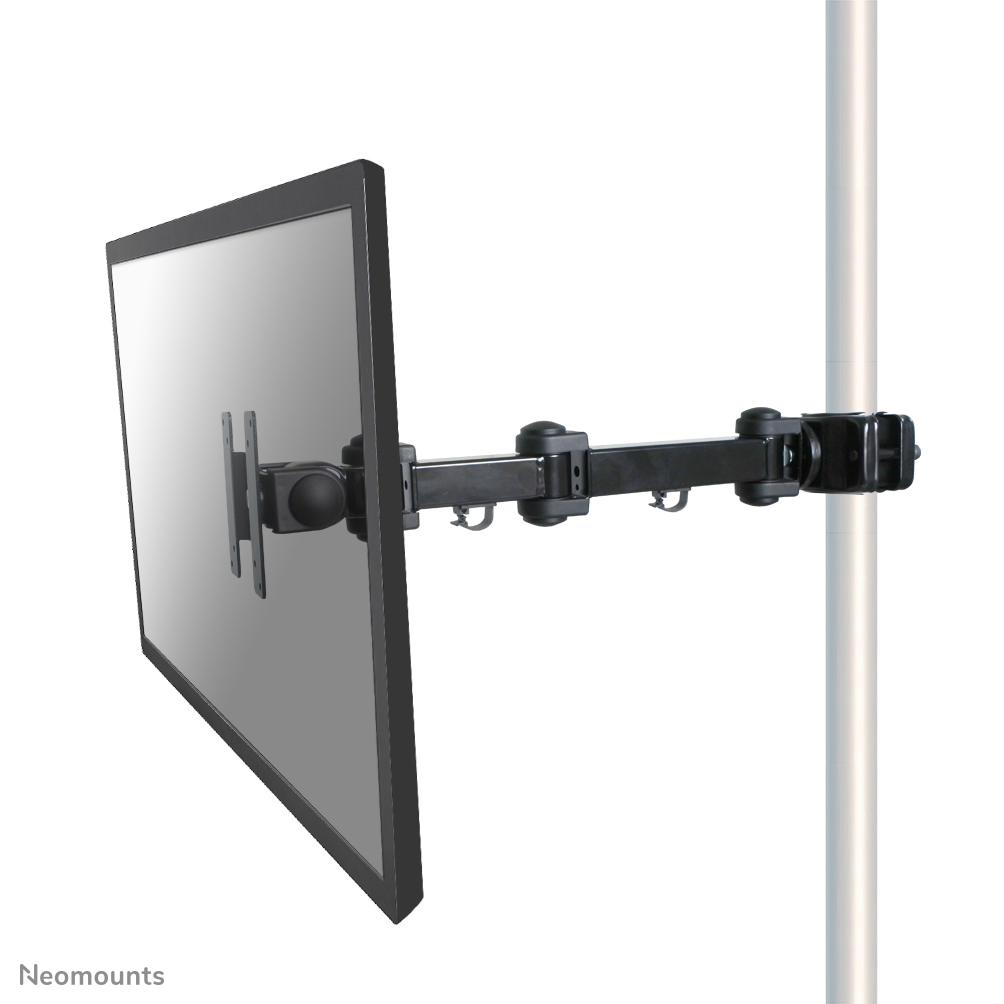 The Neomounts pole mount, model FPMA-WP300BLACK is a tilt-, swivel and rotatable pole mount for flat screens up to 30" (76 cm). \nIdeal to mount screens up to 30" (76 cm) to any pole with a diameter between 30 and 50mm. This mount is a great choice when you want the ultimate viewing flexibility with your flat screen. Effortless position the display in almost any direction. \nNeomounts' tilt- (180°), rotate (360°) and swivel (180°)technology allows the mount to change to any viewing angle to fully benefit from the capabilities of the flat screen. Depth of this mount is 43 centimetres. Cable management conceals and routes cables from mount to flat screen. Hide your cables to keep living room, bedroom or home cinema installation nice and tidy.\nNeomounts FPMA-WP300BLACK has three pivot points and is suitable for screens up to 30" (76 cm). The weight capacity of this product is 10 kg each screen. The wall mount is suitable for screens that meet VESA hole pattern 75x75 and 100x100mm. Different hole patterns can be covered using Neomounts VESA adapter plates.\nAll installation material is included with the product.