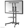 The Neomounts PLASMA-M2000E is a mobile floor stand for screens up to 85" and a weight capacity of 125 kg. This trolley allows you to use a large display over multiple rooms. Enjoy the optimal viewing positioning for both standing and seated audiences, wherever you like.\nThe versatile tilt (15°) technology allows the trolley to change to any desired viewing angle to fully benefit from the capabilities of the screen. The mount is manually adjustable in height from 115 to 185 cm, while the practical cable management conceals and routes cables from screen to floor. \nThe PLASMA-M2000E features four solid castor wheels with brake to easily move it to another location. Installation is easy and can be done quickly.