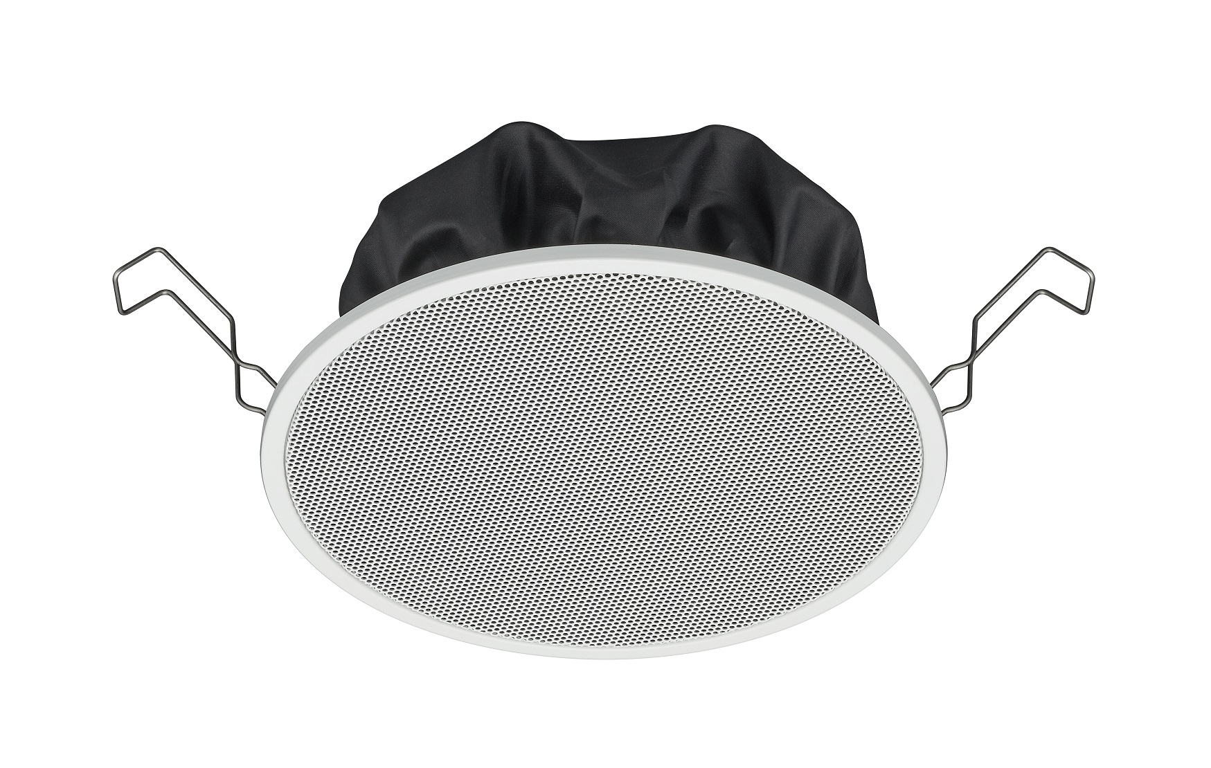 The PC-1860 Ceiling Mount Speaker is of all metallic construction and ideal for use in a voice alarm system or BGM system. It feature spring clamp mechanism for easy mounting to the ceiling. The input impedance can be easily changed by changing the tap position of the transformer. The push-in type input terminal block makes cable connection easy and allow bridge wiring.