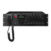 Digital microprocessor controlled voice alarm compact amplifier for voice alarm, announcements and background music. Integrated audio inputs, 8-level priority control, voice alarm control, power amplifier, circular dial and complete monitoring according to VDE 0833-4 and VDE 0828-1.\n6 switchable and adjustable volume speaker outputs with a total of 360 Watt of rated output. Three microphone / audio carrier inputs with switchable sensitivity as well as two stereo audio carrier inputs with volume control and tone control on front panel, one input switchable sensitivity and volume control back to prevent an intentional or unintentional adjustment, two speaking bus lines for up to four external stations.\nFront mounted acoustically and electrically monitored fire brigade microphone (fist microphone) with control panel for controlling the alarm: emergency one and out, range selection, selection of evacuation and warning text. Fault indication with plain text display of the occurred error, acoustic signal and reset button.\nPassword-protected setting the equalizer settings, language, password many more. and display relevant system information via menu on alphanumeric two-line display. \nLAN connection for system programming and read out of the log with detailed event and error messages to diagnose locally or to remote diagnosis.\n8 universally usable inputs and 8 universally usable control outputs; 6 separate inputs for alarm control of the BMZ with switchable monitoring, one with 24-volt control (polarity); three separate control outputs with relay contacts for feedback to the BMZ: collective fault signal (changeover contact), emergency (changeover contact) and activated CPU off (make contact). Each line output a switching relay for example external volume control in 3- and 4-wire technology.\nAn appropriate additional amplifier can be used as a rescue and announcement enhancer, in the second case, announcements are made without the interruption of background music in durchsagelose areas can be made. The monitoring of the additional amplifier is taken over by the compact amplifier. Extension of the system up to 60 areas with suitable extension amplifiers possible.\nThe user-friendly multilingual programming software on Windows(R)is included.