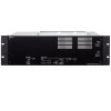 The VX-3016F frame is one of three system managers of TOA's VX-3000 series rack-mount type public address and voice evacuation system certified according to the European Standard EN 54-16.\nIt provides 16 speaker line outputs/zones. Either one amplifier drives all 16 line outputs/zones or two amplifiers drive 8 line outputs/zones each. Up to three additional VX-3016F frames without amplifiers can be added to expand the number of zones of the version with one amplifier installed. The amplifier modules can be easily mounted and removed. Up to two power amplifier modules of different wattages can be mounted, of which the second one can either be used for the zones or as a standby amplifier. The standby amplifier, when mounted, can be shared among other VX-3000F units. Each amplifier channel has the following DSP functions: different filter types (PEQ, HPF, LPF, shelving, CD-horn EQ, notch), compressor and delay that enables appropriate acoustic adjustment for any broadcast area. The smart ANC function enables the control of ambient noise and is not affected by the audio signal it controls. Therefore, the sensor’s installation location is not critical. The monitoring of the speaker lines can be selected between impedance monitoring with selectable pilot tone or by end-of-line modules.\nThe VX-3016F has 4 balanced audio input terminals from microphone up to line level sensitivity, with phantom power selection for microphone use. The inputs can also be set for receiving an emergency broadcast from another VA system of higher priority and broadcast it under the condition of the emergency mode. Up to 8 remote microphones can be connected via RJ45 ports; two of which can be emergency microphones. The following DSP functions are available for each input channel: different filter types (PEQ, HPF, LPF, shelving) and compressor. Helpful features such as feedback suppressor or voice-controlled broadcast activation (VOX) enhance the usability of the system.