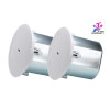 The AS108 comes in a pair of 8" coaxial 2-way ceiling loudspeakers that deliver decent sonic performance. Each speaker ships with a 8" woofer, 20 mm dome tweeter, and 80W RMS, 160W peak (8O) power handling capability. Excellent and consistent sound quality is ensured by taking advantages of its 65 - 20 kHz bandwidth and wide coverage, allowing less speakers used to cover the listening area to lower the cost of the system installed.\nThe loudspeaker contains a matching transformer, running comfortably on 70 / 100 V lines or at 8 O to suit various application demands. Phase issues are minimized as a result of the adoption of the coaxial neodymium magnetic driver, making sound waves with various frequency bands easier to be added together instead of canceling each other out. Made of UL94-V0-compliant flame retardant materials, the housing, together with the Zinc-plated steel backcan, improve safety for applications where flame and fire protection is of the highest importance. When it comes to installation, each speaker features a cutout template for quick and easy post construction installation and can be secured with its dog-leg mounting system. The paintable magnetic grille assures effortless installation and cleaning while giving unobtrusive appearance in any room design.\nAS108 is ideal for residence and enterprise-grade audio applications, such as auditoriums, houses of worship, sports venues, and any small or mid-sized public address systems that require a clear and intelligible sound solution without compromise on life safety.