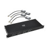 HDMI Matrix Switch Kit Ideal for Digital Signage in Offices, Schools and Trade Shows\nThis HDMI matrix switch kit includes a quad-input switch and four pigtail-style receivers. It’s recommended for office buildings, schools, houses of worship, trade shows, meeting facilities, retail settings, hotels and other locations with video presentations or digital signage applications. The matrix switch and receivers extend 4K audio/video up to 230 feet (70.1 meters), making the kit ideal for areas where the four source devices and four remote displays are farther apart than conventional cabling allows.\nExtends a 4K A/V Transmission up to 230 ft....or Even Farther\nThe B127A-4X4-BH4PH allows video from any of four connected HDMI sources to display on four HDMI displays up to 230 feet away via user-supplied Cat6 cabling. You may select which video to display on which monitors by using the push button on the switch or the included IR remote control, which lets you operate the switch from the receiver end of the installation. By installing B127A-010-H signal repeaters (sold separately) between the switch and receivers, you can extend the signal up to 400 feet (121.9 meters) total per video output.\nTransmits Crystal-Clear 4K Video with Multi-Channel Audio, HDR and 4:4:4 Color\nThe B127A-4X4-BH4PH supports Ultra HD resolutions up to 3840 x 2160 (4K x 2K) at 60 Hz, as specified in HDMI 2.0, with 36-bit Deep Color. High Dynamic Range (HDR) provides a wide range of vibrant colors with richer contrast, brighter whites and deeper blacks that pop on your 4K display. HDCP 2.2 compliance allows you to stream 4K Amazon and Netflix content with no complications. This switch kit also supports 4:4:4 chroma subsampling for top-level PC gaming or using your HDTV as a PC monitor.\nBuilt-In PoC Technology Provides Power to Avoid Bulky External Power Bricks\nAfter you connect the included external power supply to the switch, Power over Cable (PoC) technology powers the receivers over Cat6 cable. LEDs on both the switch and receivers will light up to indicate the system is receiving power and a signal is being transmitted. PoC lets you avoid the hassle of a bulky power brick and gives you the freedom to place the receivers without the need for a nearby AC outlet.\nMulti-Resolution Support Allows Mixing and Matching of Displays of Different Resolutions\nSay you have a brand new 4K/60 Hz HDTV in the living room, but want to extend video from the source devices to the older 1080p TV in the kitchen and the 4K (at 30 Hz) monitor in your home office. The B127A-4X4-BH4PH is backward compatible with 4K/30 Hz and 1080p resolutions via automatic switching, allowing each connected monitor to display video at its maximum resolution.\nPlug-and-Play Operation for Quick Setup and Immediate Use\nThe included matrix switch and receivers operate with no software required. The switch comes with detachable surface-mount brackets for mounting to a pole, rack or flat surface. Connect the switch to as many as four sources with user-supplied HDMI cables (such as P568- or P569-Series). Then, connect the pigtail receivers’ built-in HDMI plugs to the displays. Finally, connect the switch to the receivers with user-supplied Cat6 patch cable (such as N202-Series).\nTAA-Compliant for GSA Schedule Purchases\nThe B127A-4X4-BH4PH is compliant with the Federal Trade Agreements Act (TAA), which makes it eligible for GSA (General Services Administration) Schedule and other federal procurement contracts.