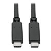 USB-C to USB-C Cable Connects 2 USB-C Devices, Including MacBooks and Smartphones\nThis three-foot USB Type-C to Type-C cable allows you to connect one USB-C device to another. For instance, a laptop to a docking station, your smartphone to a wall charger, or a hard drive or flash drive to a computer or tablet. The USB-C to C cable is compatible with any device with a USB-C or Thunderbolt 3 port, including MacBooks, Ultrabooks and Chromebooks.\nTransfers Data and Charges Devices at Lightning-Fast USB 3.1 Gen 2 Speeds\nThe PD Charging cable supports USB 3.1 Gen 2 data transfer rates up to 10 Gbps, which is twice as fast as USB 3.1 Gen 1. It also provides power output up to 5 amps (100 watts), which is sufficient for fast-charging, syncing and powering most large-capacity devices. The USB Type-C to USB Type-C cable is backward compatible with previous USB generations, allowing you to use it with older equipment.\nReversible USB-C Connectors Attach in Either Direction\nUnlike traditional USB cables that connect in only one direction, the reversible USB-C male connectors plug into a USB-C or Thunderbolt 3 port in either direction for a fumble-free connection every time.\nUSB-IF Certification Ensures Rigorous Testing and Top-of-the-Line Performance\nThis cable meets the high standards of USB-IF (USB Implementers Forum, Inc.), a non-profit organization consisting of companies that developed the USB specification. Receiving USB-IF certification means the U420-C03-G2-5A meets the industry’s highest environmental, mechanical and electrical standards. It operates with your USB peripherals, adapters and cables with top efficiency and safety.