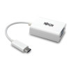 USB-C to VGA Adapter Connects to Your Laptop or Tablet’s USB-C or Thunderbolt 3 Port\nThis USB Type-C to VGA adapter connects a VGA monitor to the USB-C or Thunderbolt 3 port on your computer, tablet, laptop, notebook, MacBook, Chromebook, Ultrabook or smartphone. It’s an ideal connector for multitasking, presenting video at trade shows and conferences, editing documents, playing online games and watching movies on a larger screen. It saves you money by allowing you to use your existing VGA display instead of buying a new monitor.\nSupports USB DisplayPort Alternate Mode for Transmitting Video Signals\nWith a source device that also supports USB DisplayPort Alt Mode, you can extend video from your primary display to another, duplicate the same video on both displays, or change the second display to your primary.\nTransmits Crystal-Clear 1080p Video to a VGA Display\nTo send high-definition video to a VGA television, projector or monitor, connect the VGA port to the display using a VGA cable (sold separately). The VGA port supports HD video resolutions up to 1920 x 1200 (1080p) at 60 Hz., as well as 36-bit Deep Color (12 bits per channel) and VGA transfer rates up to 6.75 Gbps (2.25 Gbps per channel). The USB-C to VGA cable transfers data at rapid USB 3.2 Gen 1 speeds up to 5 Gbps.\nReversible USB-C Connector Attaches in Either Direction\nUnlike traditional USB cables that connect in only one direction, the reversible USB-C male connector plugs into a USB-C or Thunderbolt 3 port in either direction for a fumble-free connection every time.\nReady to Use Right from the Package, So You Can Plug and Play Immediately\nThe plug-and-play USB Type-C to VGA cable requires no software or drivers to download and install. Just connect the USB-C male plug to the USB-C or Thunderbolt 3 port on a source device that supports USB DisplayPort Alternate Mode. Then, connect the VGA female port to the monitor using a VGA cable (such as P502-Series). The six-inch USB Type-C to VGA adapter fits into your laptop bag, purse or briefcase for connecting to VGA displays anywhere.