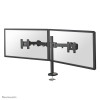 The Neomounts desk mount, model FPMA-D960DG is a tilt-, swivel and rotatable desk mount for 2 flat screens up to 27". This mount is a great choice for space saving placement on desks using a grommet mount.\nNeomounts versatile tilt (180°), rotate (360°) and swivel (180°) technology allows the mount to change to any viewing angle to fully benefit from the capabilities of the flat screen. The mount is manually height adjustable from 0 to 45 centimetres. Depth adjustable from 10 to 43 centimetres. An innovative cable management conceals and routes cables from mount to flat screen. Hide your cables to keep the workplace nice and tidy.\nNeomounts FPMA-D960DG has three pivot points and is suitable for screens up to 27" (69 cm). The weight capacity of this product is 8 kg each screen. The desk mount is suitable for screens that meet VESA hole pattern 75x75 or 100x100mm. Different hole patterns can be covered using Neomounts VESA adapter plates.\nFor curved monitor screens we recommend our FPMA-D960 PLUS models; our FPMA-D960DVBLACKPLUS is suitable for screens up to 49" (124 cm). The weight capacity of this product is 32 kg each screen. This monitor arm is therefore extremely suitable for widescreens and curved screens. \nBy using an ergonomic mount neck- and back complaints can be avoided. Ideal for use in offices and on counters or in a reception area.\nAll installation material is included with the product.