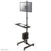 The Neomounts floor stand, model FPMA-MOBILE1700 is a mobile floor stand for flat screens up to 32" for keyboards, mice and PC. This mobile stand is a great choice for space saving placement or when wall-, ceiling mounting or desk placement is not an option. This cart stretches your investment by serving a variety of projection needs by sharing a display, keyboard, mouse and PC over multiple rooms. Get optimal positioning for both standing and seated audiences, in any application, in any part of your location.\nNeomounts versatile tilt (30°), turn (360°) and swivel (360°) technology allows the mount to change to any viewing angle to fully benefit from the capabilities of the flat screen. The mount is manually height adjustable from 94 to 175 centimetres. An innovative cable management conceals and routes cables from mount to flat screen. Hide your cables to keep the stand nice and tidy.\nNeomounts' floor stand, FPMA-MOBILE1700 holds your screen and even hides your cables. The casters allow the stand to move it to where you need it. Easily roll this cart through doorways and over thresholds.\nNeomounts FPMA-MOBILE1700 has one pivot point and is suitable for screens up to 32" (81 cm). The weight capacity of this product is 3-8 kg for the flat screen, 10 kg for the PC and 2 kg for keyboard and mouse. The stand is suitable for screens that meet VESA hole pattern 75x75 & 100x100mm. Different hole patterns can be covered using Neomounts VESA adapter plates. Speedy assembly and installation.\nAll installation material is included with the product.