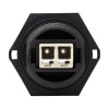 LC/LC Fiber Coupler Recommended for Outdoor or Harsh Outdoor Environments\nThis duplex multimode LC/LC fiber coupler lets you connect 10 Gb Ethernet fiber networks in outdoor applications and other areas where protection from harsh elements is essential, such as factories, warehouses, recycling plants, machine shops and other dusty environments. It inserts into an industrial-grade wall plate or surface-mount box to create a watertight seal. An included dust cap protects the coupler from dust, debris and moisture when not in use.\nIP68 Rating Denotes Resistance to Dust and Water\nThe coupler is 100% protected against dust and able to endure immersion in 1.5 meters of water for up to 60 minutes* with no damage or decline in performance, making it ideal for basement applications. For applications that require IP68 protection, use the coupler with a N206-SB01-IND surface-mount box and N820-Series duplex multimode fiber cabling. If only IP44 protection against splashing water from all directions is required, pair the coupler with the N820-Series cable and an N206-FP01-IND, N206-FP02-IND or N206-FP04-IND metal wall plate (all sold separately).\n*IP68 rating of water resistance in depths up to 1.5 m for 60 minutes is based on manufacturer's guarantee. Standard IP68 rating is 1.5 m for 30 minutes.