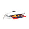 - HeatGuard™ Technology - reduces the surface temperature of the laminator, ensuring it is always safe to touch.\n- Laminates up to 100 micron pouches.\n- Release trigger for retrieving and re-aligning misfed documents.\n- Advanced controls accurately monitor lamination temperature.\n- Includes starter kit for 10 documents.\n