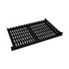 Fixed Shelf, 1U Cantilever mount, Cold rolled steel with black finish. Required mounting hardware included. Supports up to 30 lbs (13.6 kgs). Uses two shelves back to back to create a deep, fixed shelf in 2POST racks.