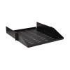 2U Vented Rack Shelf Secures Non-Rack Equipment in Your Data Center\nThis SmartRack® adjustable-depth shelf supports monitors, wireless access points, tower units and other IT equipment not typically stored in a rack. Made from heavy-duty cold-rolled steel with a durable black powder-coated finish, the SRSHELF2PUNIV has a maximum load capacity of 60 pounds (27 kilograms) when front-mounted cantilever-style and 100 pounds (45 kilograms) when mid-mounted.\nMaximizes Rack Space and Saves Desk or Floor Space in a Busy Office\nThe steel shelf mounts easily into 2U of space in a standard three- or six-inch 2-post open frame rack using the included hardware. It is 21.7 inches (55.1 centimeters) deep for organizing network and other non-rack equipment in your small office or server room. The vented surface allows generous airflow to keep your equipment cool and functioning at its peak.