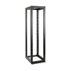This 50U Heavy-Duty 4-Post Open Frame Rack helps IT managers organize their equipment array and provides fast, easy access to installed IT equipment. The SR4POST50HD is a simple solution for housing IT equipment in secure environments and other areas that don't require a lockable rack solution. This 50U rack features heavy-duty cold-rolled steel construction with a black powder-coated finish for durability. It supports stationary loads up to 3,000 pounds (1360.8 kilograms). The SR4POST50HD comes with all the hardware required for assembly and has a self-squaring design with bolt-down provisions. For high-density applications, multiple units can be bolted together side by side.\nThe open design of the SR4POST50HD provides unobstructed airflow and easy access to equipment and cabling. It has numbered, square-hole mounting positions for easy installation of standard 19-inch rack equipment. The SR4POST50HD supports equipment depths up to 35 inches. This rack also accommodates toolless button-hole mounting for vertical PDUs and cable managers.\nThe optional SRCASTERHDKIT Heavy-Duty Rolling Caster Kit (sold separately) adds mobility to the SR4POST50HD. The SR4POST50HD also supports optional side panels with the SR50SIDE4PHD, a set of two half-size side panels that add a finished look to end-of-row racks in your data center.